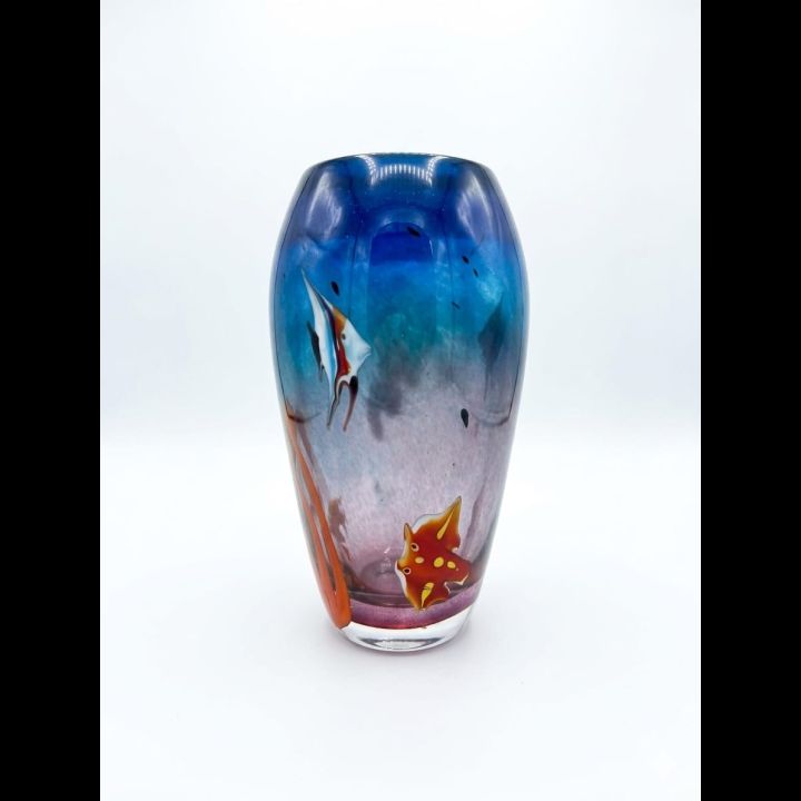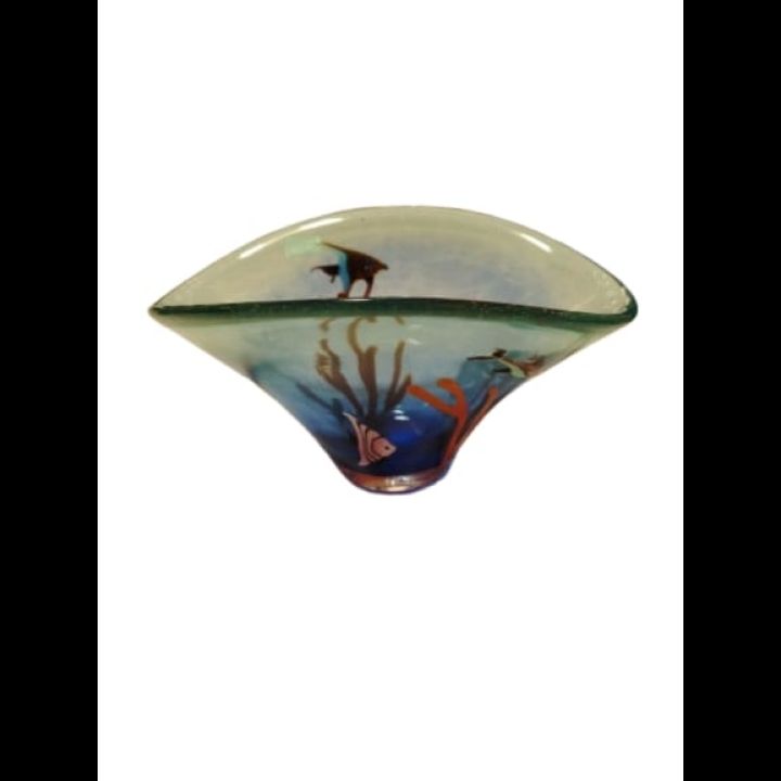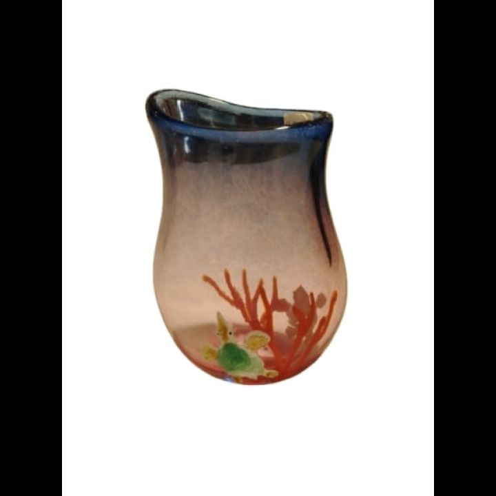 Questo oggetto è un capolavoro di artigianato muranese, un microcosmo sottomarino racchiuso nel vetro che incanta per la sua profondità. Il cuore della creazione batte nei dettagli tecnici e artistici: Minuscole bolle d'aria, imprigionate con precisione millimetrica, simulano l'ossigenazione natur...