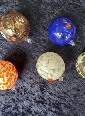 Se volete dare un tocco di originalità al vostro albero di Natale queste decorazioni sono la scelta più giusta che potete fare. Lavorate a mano utilizzando la tecnica del vetro soffiato, le palle di Natale di vetro sono il simbolo della nostra vetreria. In particolare questo modello viene prodotto usando le caratteristiche canne di vetro colorate muranesi che vengono fuse e unite assieme alla massa di cristallo. La massa viene quindi soffiata per ottenere la caratteristica forma.