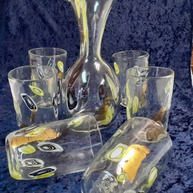 Sottoponendo il vetro a un’abrasione superficiale localizzata si ottengono scritte o disegni permanenti. Il maestro decide di fare l’incisione con motivi diversi rendendo ogni bicchiere unico. Bicchieri ideali per servire l'acqua ma anche aperitivi.