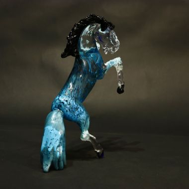 Cavallo rampante cristallo blu in vetro di Murano COD H-14