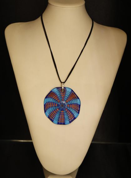 Il medaglione è stato battuto a freddo. Consiste nel levigare la superficie “battendola” su una mola a freddo ottenendo una serie di “bolli” di varie forme dando all’oggetto l’apparenza di essere stato battuto come il ferro.