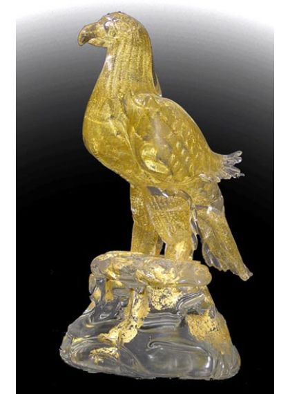 SCULTURA IN VETRO DI MURANO AQUILA SU BASE IN ORO 24 K