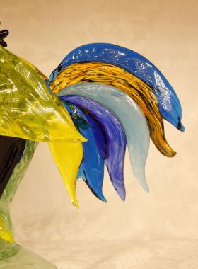 Scultura eseguita a mano presso la nostra fabbrica. La tecnica della lavorazione è quella del vetro massiccio (o massello). Consiste nel plasmare il vetro ancora allo stato pastoso utilizzando pinze, palette e forbici. Il vetro viene raccolto su un puntello più volte fino a formare la massa di vetro utile alla lavorazione.