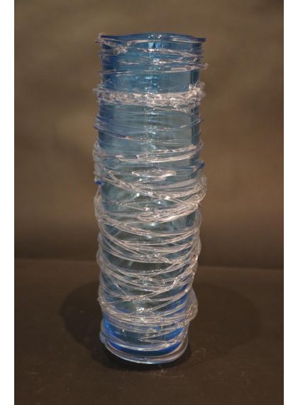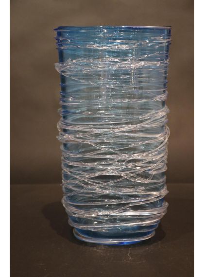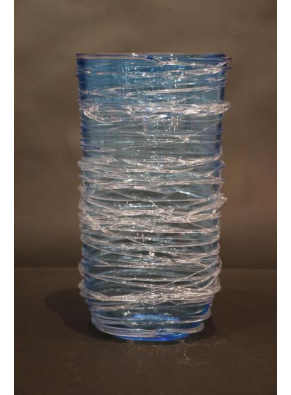 Vaso acquamare con fili cristallo in vetro di Murano COD O-08