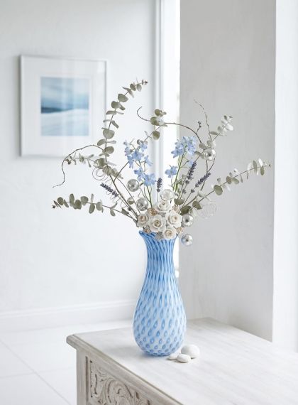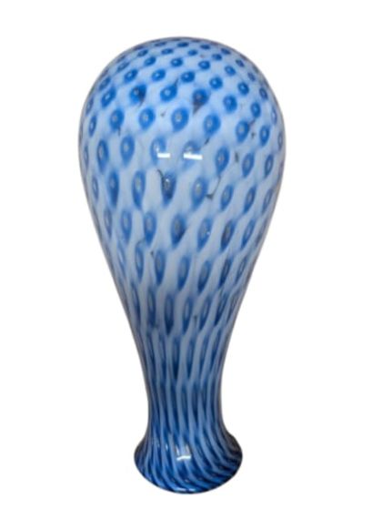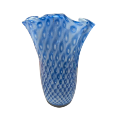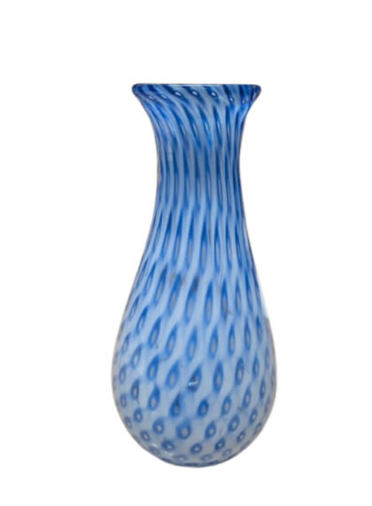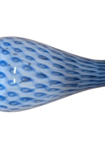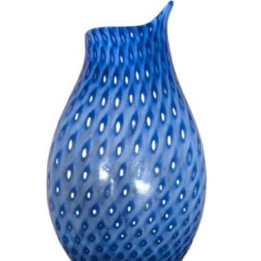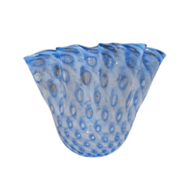 Inoltre, sebbene sia una tecnica più rara per questo tipo di lavorazione , è possibile procedere alla sovrapposizione di strati di colori diversi (ad esempio, un interno bianco opalino accostato a un esterno blu) prima della soffiatura. Questo processo crea una profondità cromatica che accentua ulteriormente i punti di rilievo tipici della lavorazione artigenale muranese.
