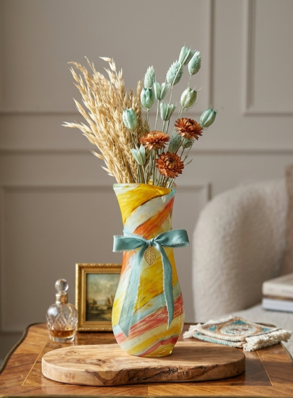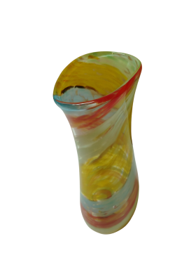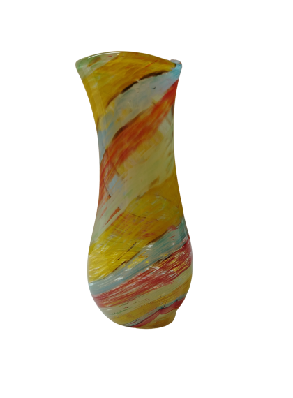 La tecnica menzionata si basa sulla stratificazione del colore. Aggiungendo polveri minerali e pigmenti a una massa vitrea a una temperatura di 1100°C, il Maestro non si limita a colorare il vetro, ma lo "dipinge" dall'interno mentre è ancora allo stato fluido (il cosiddetto bolo). L'aspetto più affascinante di questa lavorazione è l'irripetibilità. Poiché le polveri si fondono e si muovono seguendo il soffio e il gesto del Maestro, non esisteranno mai due pezzi identici. È proprio in questo "caos controllato" che risiede il valore dell'artigianato d'eccellenza. È un pezzo di rara eleganza; sembra quasi che il Maestro sia riuscito a "congelare" un istante di moto fluido in una forma solida e trasparente.