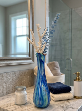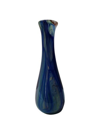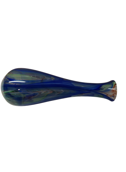 La tecnica menzionata si basa sulla stratificazione del colore. Aggiungendo polveri minerali e pigmenti a una massa vitrea a una temperatura di 1100°C, il Maestro non si limita a colorare il vetro, ma lo "dipinge" dall'interno mentre è ancora allo stato fluido (il cosiddetto bolo). L'aspetto più affascinante di questa lavorazione è l'irripetibilità. Poiché le polveri si fondono e si muovono seguendo il soffio e il gesto del Maestro, non esisteranno mai due pezzi identici. È proprio in questo "caos controllato" che risiede il valore dell'artigianato d'eccellenza. È un pezzo di rara eleganza; sembra quasi che il Maestro sia riuscito a "congelare" un istante di moto fluido in una forma solida e trasparente.