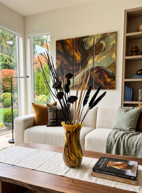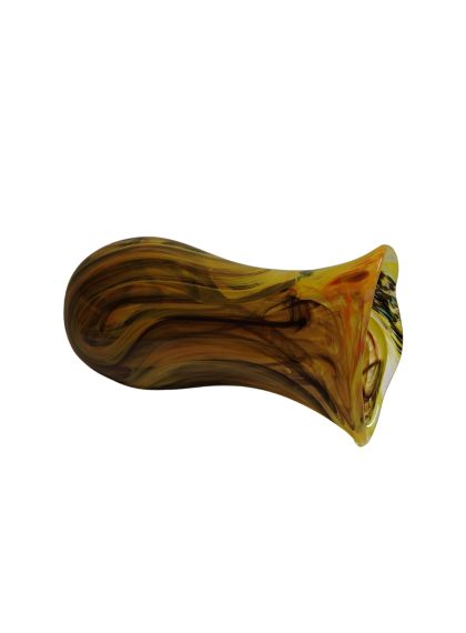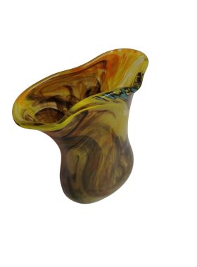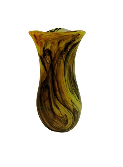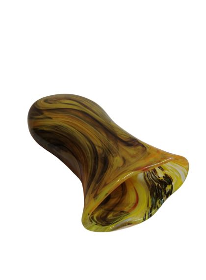 La tecnica menzionata si basa sulla stratificazione del colore. Aggiungendo polveri minerali e pigmenti a una massa vitrea a una temperatura di 1100°C, il Maestro non si limita a colorare il vetro, ma lo "dipinge" dall'interno mentre è ancora allo stato fluido (il cosiddetto bolo). L'aspetto più affascinante di questa lavorazione è l'irripetibilità. Poiché le polveri si fondono e si muovono seguendo il soffio e il gesto del Maestro, non esisteranno mai due pezzi identici. È proprio in questo "caos controllato" che risiede il valore dell'artigianato d'eccellenza. È un pezzo di rara eleganza; sembra quasi che il Maestro sia riuscito a "congelare" un istante di moto fluido in una forma solida e trasparente.