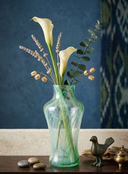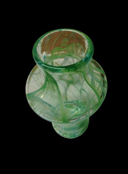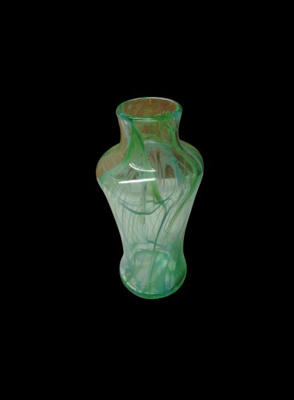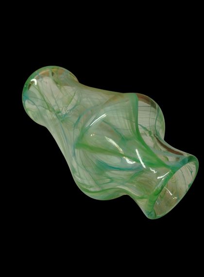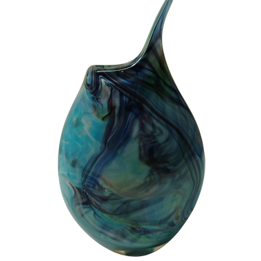 La tecnica menzionata si basa sulla stratificazione del colore. Aggiungendo polveri minerali e pigmenti a una massa vitrea a una temperatura di 1100°C, il Maestro non si limita a colorare il vetro, ma lo "dipinge" dall'interno mentre è ancora allo stato fluido (il cosiddetto bolo). L'aspetto più affascinante di questa lavorazione è l'irripetibilità. Poiché le polveri si fondono e si muovono seguendo il soffio e il gesto del Maestro, non esisteranno mai due pezzi identici. È proprio in questo "caos controllato" che risiede il valore dell'artigianato d'eccellenza. È un pezzo di rara eleganza; sembra quasi che il Maestro sia riuscito a "congelare" un istante di moto fluido in una forma solida e trasparente.
