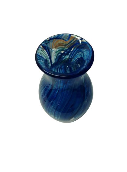 La tecnica menzionata si basa sulla stratificazione del colore. Aggiungendo polveri minerali e pigmenti a una massa vitrea a una temperatura di 1100°C, il Maestro non si limita a colorare il vetro, ma lo "dipinge" dall'interno mentre è ancora allo stato fluido (il cosiddetto bolo). L'aspetto più affascinante di questa lavorazione è l'irripetibilità. Poiché le polveri si fondono e si muovono seguendo il soffio e il gesto del Maestro, non esisteranno mai due pezzi identici. È proprio in questo "caos controllato" che risiede il valore dell'artigianato d'eccellenza. È un pezzo di rara eleganza; sembra quasi che il Maestro sia riuscito a "congelare" un istante di moto fluido in una forma solida e trasparente.