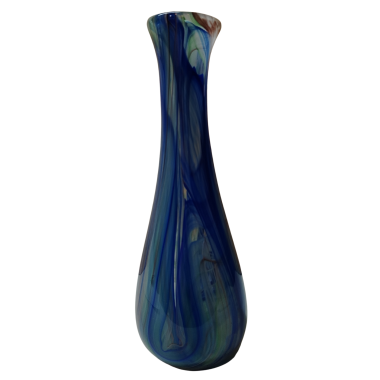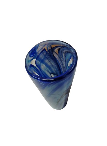 La tecnica menzionata si basa sulla stratificazione del colore. Aggiungendo polveri minerali e pigmenti a una massa vitrea a una temperatura di 1100°C, il Maestro non si limita a colorare il vetro, ma lo "dipinge" dall'interno mentre è ancora allo stato fluido (il cosiddetto bolo). L'aspetto più affascinante di questa lavorazione è l'irripetibilità. Poiché le polveri si fondono e si muovono seguendo il soffio e il gesto del Maestro, non esisteranno mai due pezzi identici. È proprio in questo "caos controllato" che risiede il valore dell'artigianato d'eccellenza. È un pezzo di rara eleganza; sembra quasi che il Maestro sia riuscito a "congelare" un istante di moto fluido in una forma solida e trasparente.