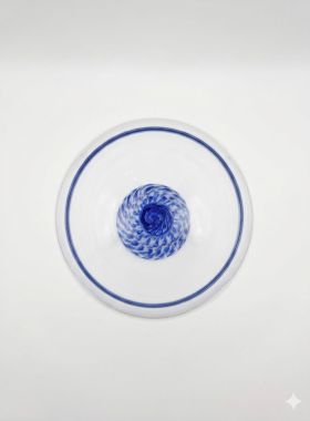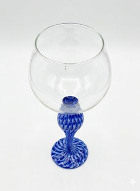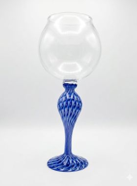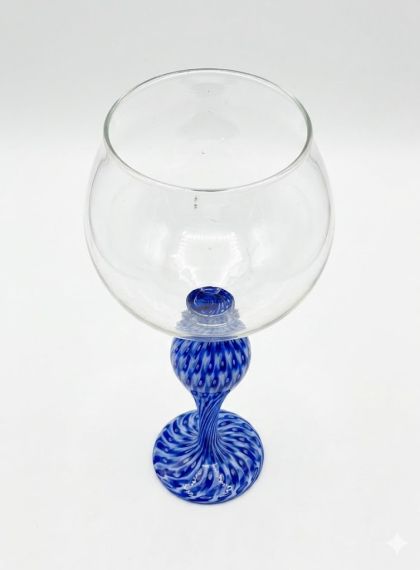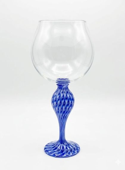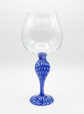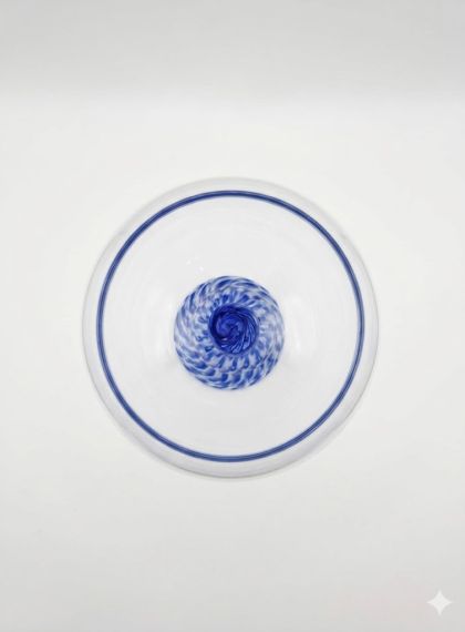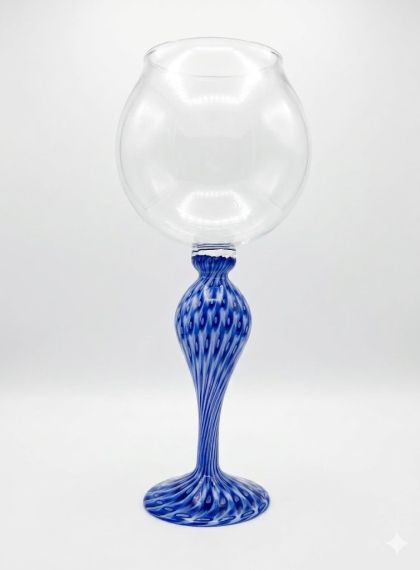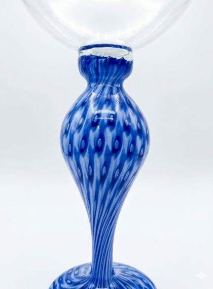 Lo stelo è soffiato e arricchito con la nostra decorazione a pizzo biano e blu.