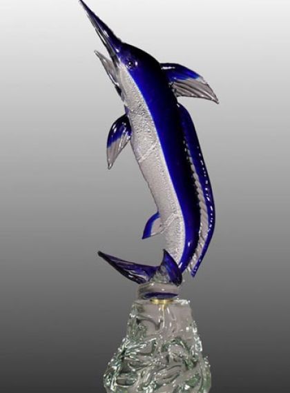 Scultura in vetro di Murano PESCE SPADA SU BASE