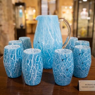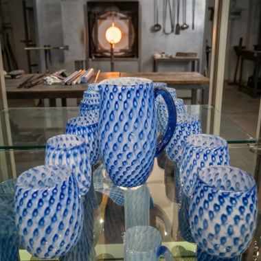 Prodotto eseguito a mano con la tecnica del vetro soffiato con decorazione a incisione. L’incisione del vetro consiste nel satinare superficialmente alcune zone di un oggetto di vetro a scopo decorativo, utilizzando mole abrasive: la complessità dell’oggetto e il suo spessore determinano la cautela che bisogna porre anche in questa lavorazione.