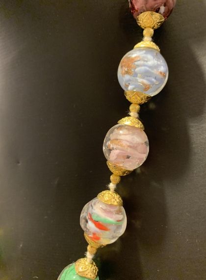 Collana in perle fatta a mano in vetro di Murano con la tecnica della lavorazione a lume.