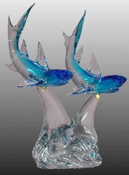 Scultura in vetro di Murano SQUALI SU ROCCIA