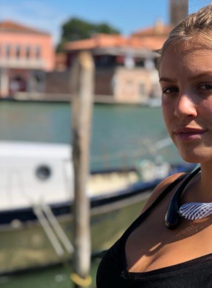 Collana ed orecchini fatti a mano in vetro di Murano. La tecnica utilizzata è il vetro soffiato infatti sono molto leggeri e facili da indossare. Per indossare basta allargare l'elastico interno.