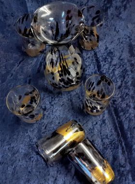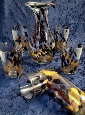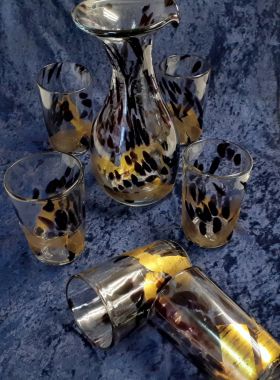 Servizio di 6 bicchieri più la caraffa senza manico cristallo con decorazioni di colore nero.