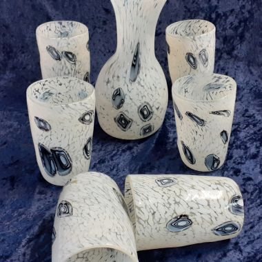 Servizio di 6 bicchieri più la bottiglia cristallo con decorazioni foglia oro e murrine.