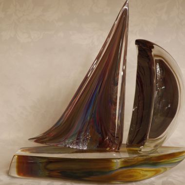 Bellissima scultura rappresentante un delfino. Il tipo di vetro utilizzato si chiama Calcedonio. E’ uno dei più vecchi e uno dei più rari tipi di vetro. I colori, le ombre e le sfumature del misterioso calcedonio vengono dal processo chimico intrinseco ad ogni fusione del vetro. E’ una reazione dovuta all’effetto che il metallo argentato ha sui minerali e le sostanze che si trovano nel vetro.