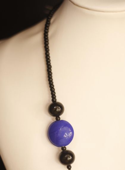 Collana perle blu e nere in vetro di Murano COD N-32