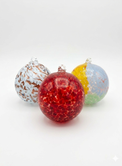 Ogni palla è creata artigianalmente con la tecnica del vetro soffiato.