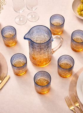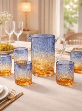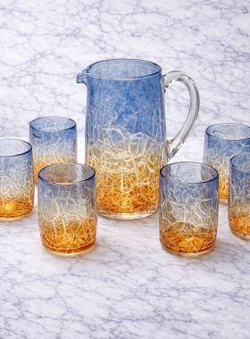set bicchieri N 6 + caraffa decoro ghiaccio bicolore