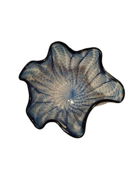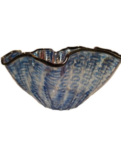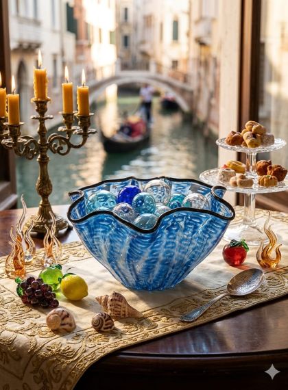 Per la tecnica del BALATON il maestro si affida all’uso di uno stampo in metallo, con punte a piccola piramide dalla base quadrata lungo tutta la superficie interna della sua circonferenza che soffia il vetro all'interno. Il vetro espandendosi riempie i vuoti, creando il caratteristico decoro. Nella soffiatura, il vetro ne riempie completamente il vuoto e restituisce un particolare effetto ottico di rilievo incrociato. I modelli classici sono rifiniti con un filo colorato applicato a caldo sulla bocca del vaso. Materiale: Autentico vetro di Murano soffiato a bocca e lavorato interamente a mano