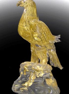 SCULTURA IN VETRO DI MURANO AQUILA SU BASE IN ORO 24 K