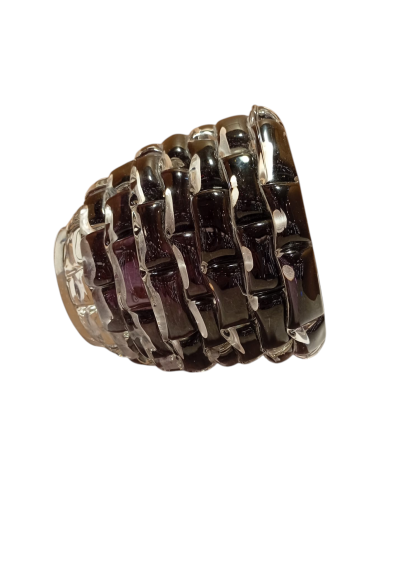 Questo pezzo è un esempio affascinante di arte vetraria muranese contemporanea lavorate a mano, ci sono alcuni elementi distintivi che rendono questo modello unico rispetto alla produzione industriale o seriale. Ecco una distinzione dettagliata del modelloTecnica Rostrato: Superficie "a punte" modellata a mano, segno di pura artigianalità e asimmetria voluta.Macie di Colore: Inserti cromatici sospesi nel cristallo che rendono ogni pezzo un esemplare unico e irripetibile.Contrasto Materico: Un equilibrio perfetto tra la forza delle punte e la trasparenza luminosa del vetro.Segni di Autenticità: La presenza del "pontello" (la cicatrice della lavorazione) ne certifica l'origine muranese e il valore di scultura tattile.