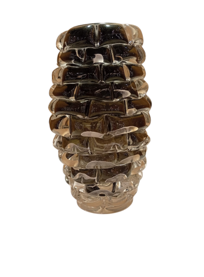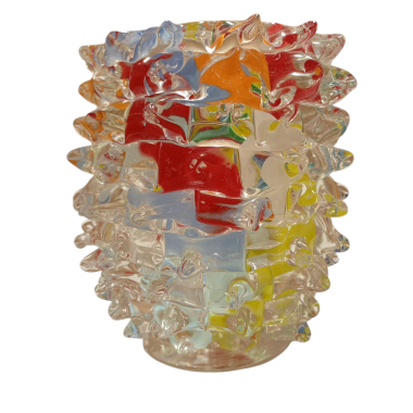 Questo pezzo è un esempio affascinante di arte vetraria muranese contemporanea lavorate a mano, ci sono alcuni elementi distintivi che rendono questo modello unico rispetto alla produzione industriale o seriale. Ecco una distinzione dettagliata del modelloTecnica Rostrato: Superficie "a punte" modellata a mano, segno di pura artigianalità e asimmetria voluta.Macie di Colore: Inserti cromatici sospesi nel cristallo che rendono ogni pezzo un esemplare unico e irripetibile.Contrasto Materico: Un equilibrio perfetto tra la forza delle punte e la trasparenza luminosa del vetro.Segni di Autenticità: La presenza del "pontello" (la cicatrice della lavorazione) ne certifica l'origine muranese e il valore di scultura tattile.