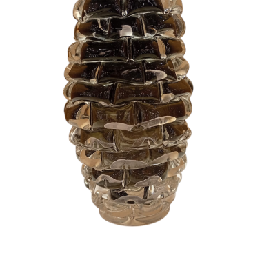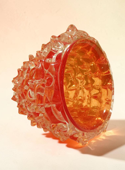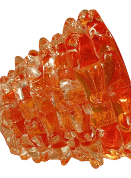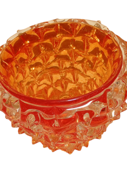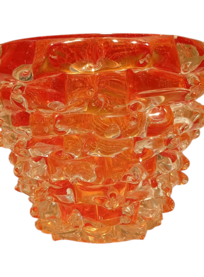 Questo pezzo è un esempio affascinante di arte vetraria muranese contemporanea lavorate a mano, ci sono alcuni elementi distintivi che rendono questo modello unico rispetto alla produzione industriale o seriale. Ecco una distinzione dettagliata del modelloTecnica Rostrato: Superficie "a punte" modellata a mano, segno di pura artigianalità e asimmetria voluta.Macie di Colore: Inserti cromatici sospesi nel cristallo che rendono ogni pezzo un esemplare unico e irripetibile.Contrasto Materico: Un equilibrio perfetto tra la forza delle punte e la trasparenza luminosa del vetro.Segni di Autenticità: La presenza del "pontello" (la cicatrice della lavorazione) ne certifica l'origine muranese e il valore di scultura tattile.
