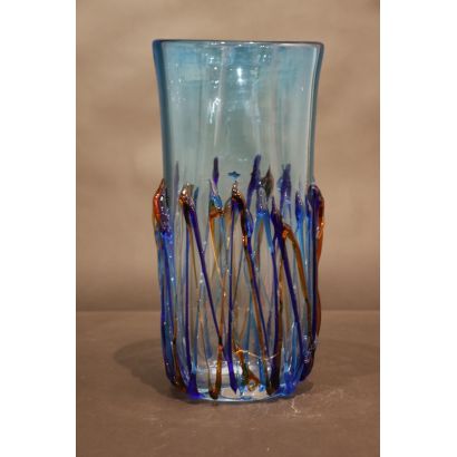 Vaso acquamare con fili multicolore in vetro di Murano COD O-07
