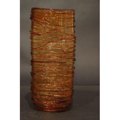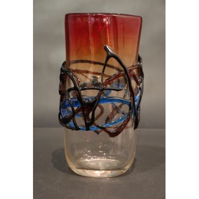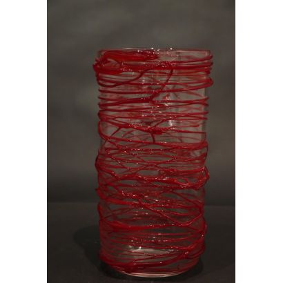 Vaso rosso con fili muticolore in vetro di Murano COD O-06