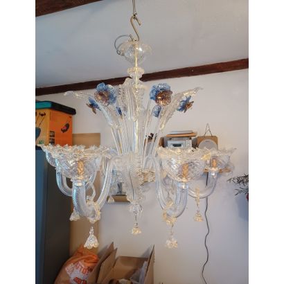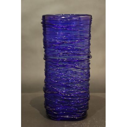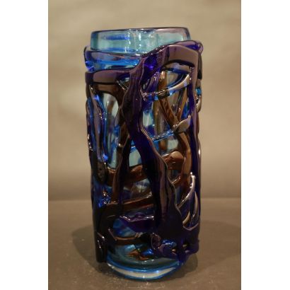 Vaso acquamare con fili multicolore in vetro di Murano COD O-03