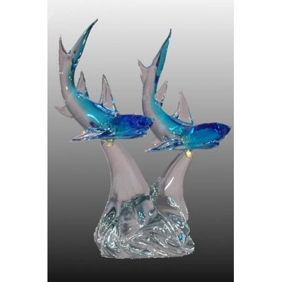 Scultura in vetro di Murano SQUALI SU ROCCIA
